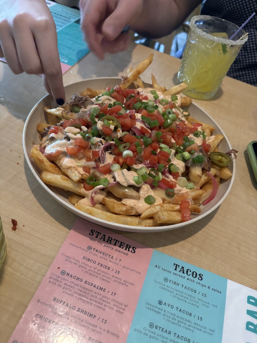 Crispy fries, choice of protein, queso, spices, pico de gallo, pickled onion, jalapeño & chipotle crema.